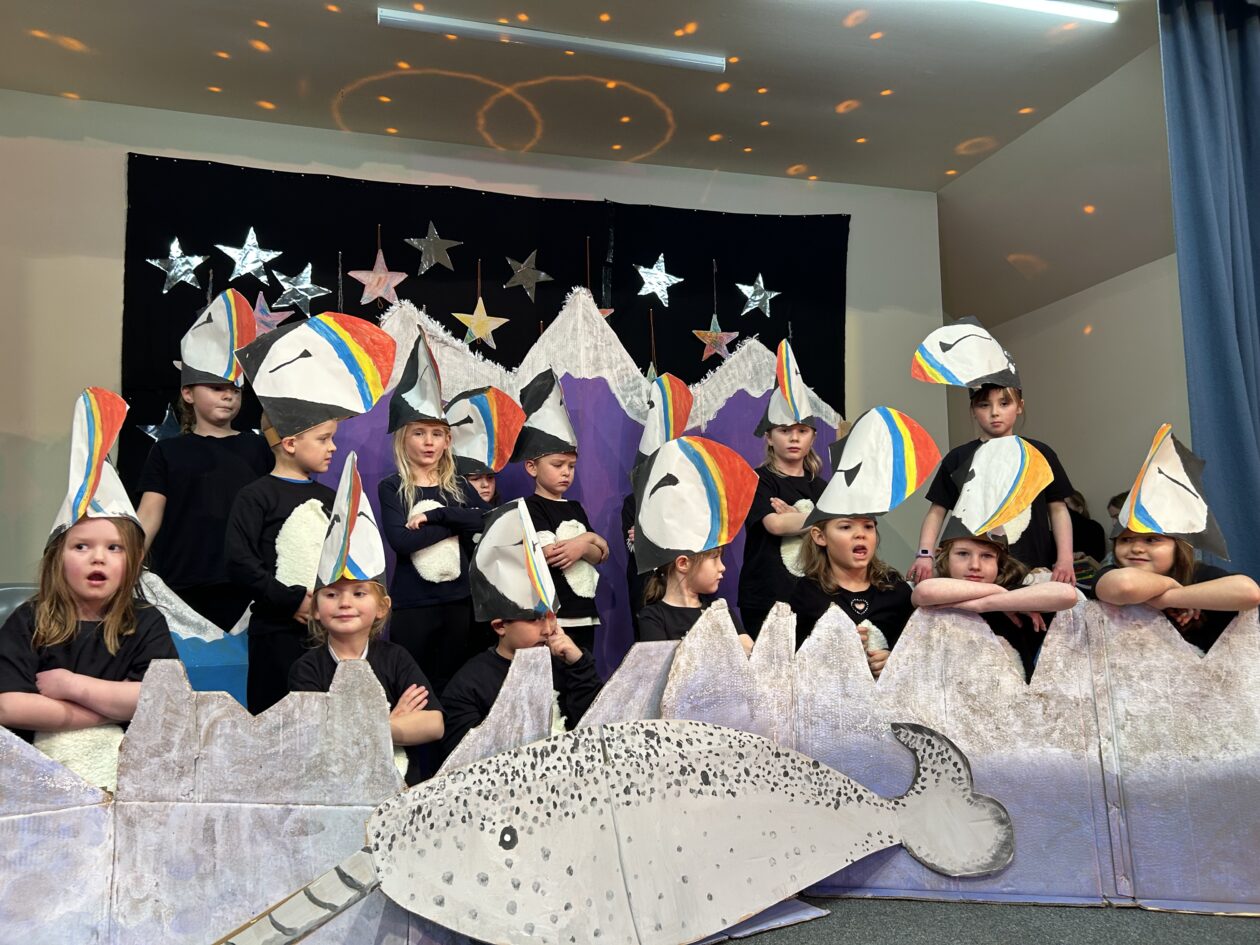 Aurora Borealis and her dancers help the children towards the North Pole.