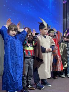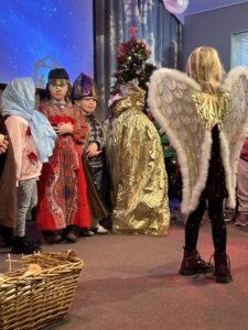The p 12 Nativity was fabulous. Mary and Joseph were expecting a baby.