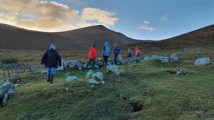 We visited and learnt about the neolithic heel-shaped burial mound at Harrier with Ranger Sheila Gear.