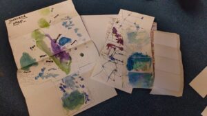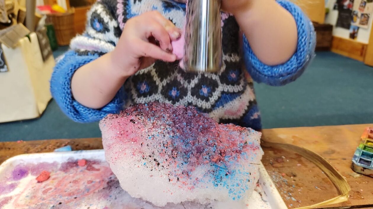 Foula ELC has been particularly curious about the creation of maps. Our ‘Creative of the Week’ has been Emily Garfield who creates beautiful imaginary maps through paint blowing – we had a try too! We loved it correlating with colour and snow.