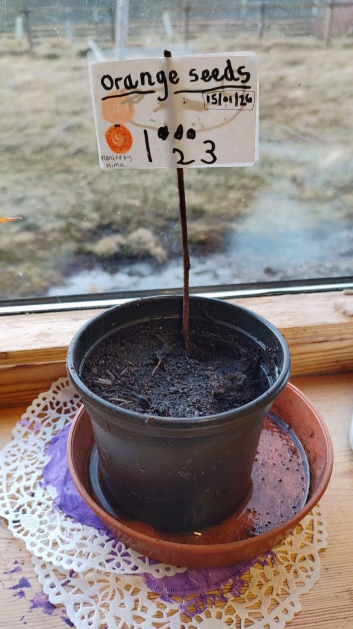 Peerie orange seeds were saved from snacktime after lots of lovely discussions and then planted by nursery and are being checked and looked after daily.