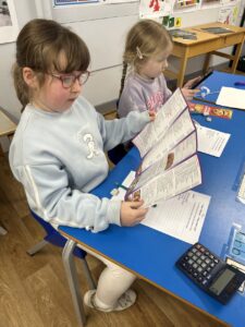 In p34 pupils used skills in reading, maths, rounding and estimating to order a Chinese Takeaway.  They loved this task and performed so well!