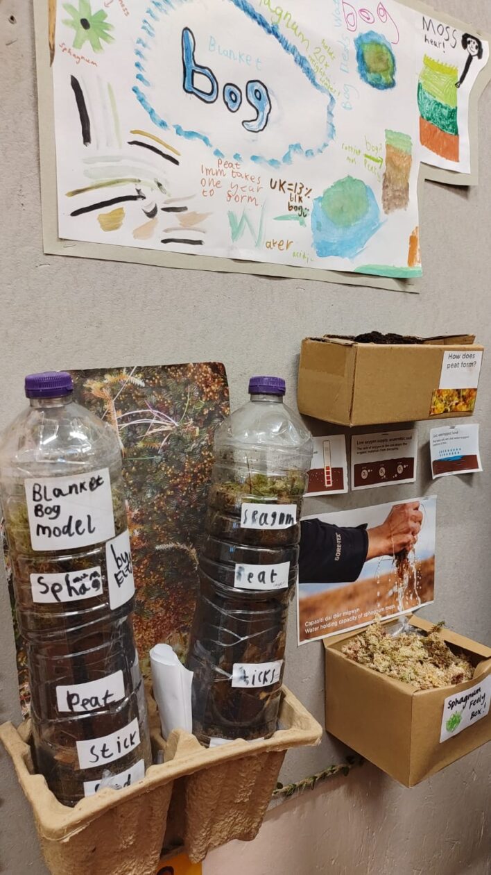 We have created a display of our project work on blanket bog – including our fab bog bottles that show the 4000 years over the stages of bog formation.