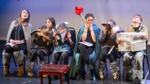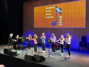 P5-7 and a couple of pupils from Sandness Primary took part in this year’s Drama Festival at Mareel. The play was about some Vikings trying to get into Valhalla after a battle. The children did well to learn all their lines and delivered them with impeccable comic timing, keeping the audience on the night well amused. Their performance was such a success that they won the Junior section Trophy. Well Done.