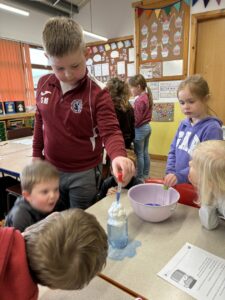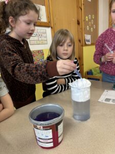 As part of our weather topic, we have been learning a bit about the water cycle. Following a discussion about this, we did an experiment to see what happens when the clouds get heavy. Before we started, we predicted what would happen. We then recorded our results. Everyone had to make sure to work well as a team.