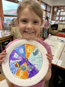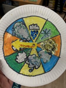 We have started our weather topic which we will be doing for the first half of the term. Last week we made our own weather wheels which we are using to show what the weather is each day.