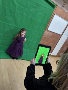 In the afternoon we did a range of book themed activities. We made book bunting and bookmarks and also completed a book scavenger hunt. For one of the activities we used the green screen to create book covers.