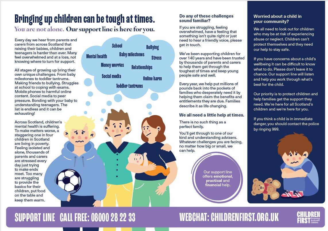 • start a webchat at www.childrenfirst.org.uk/supportline.