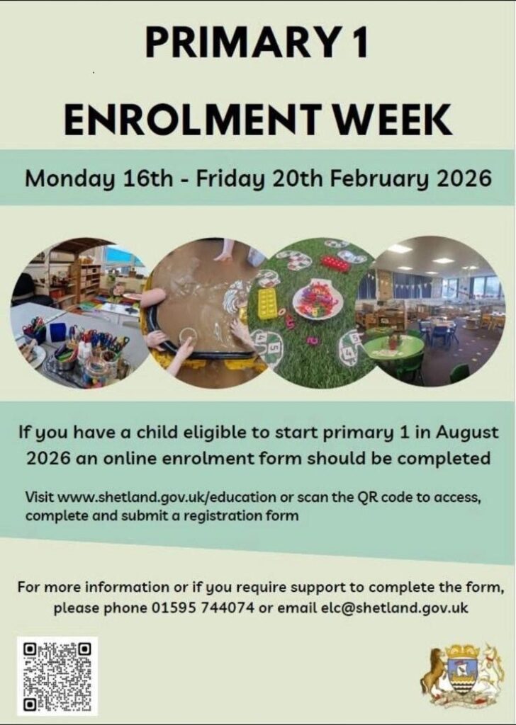 If you have a child eligible to start primary 1 in August 2026 an online enrolment form should be completed.  See poster for details.