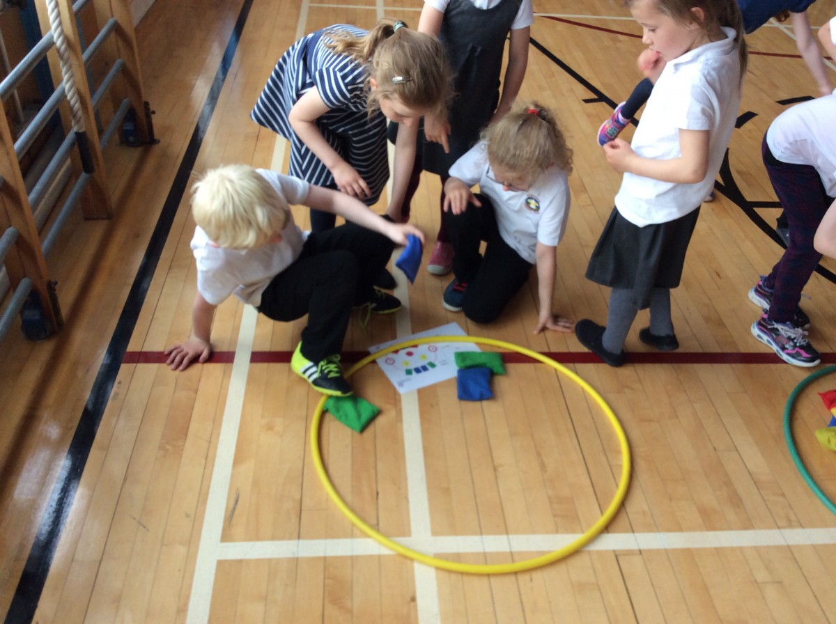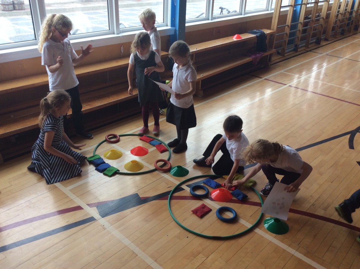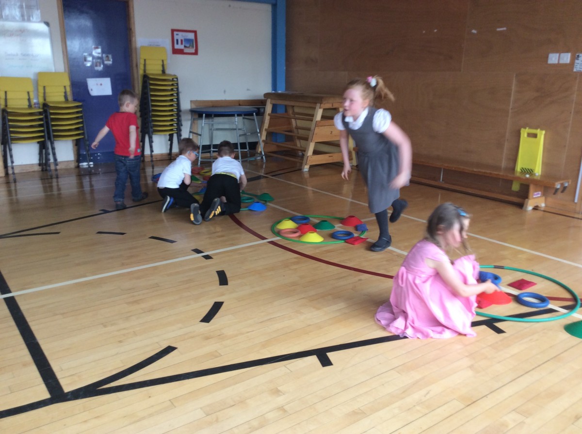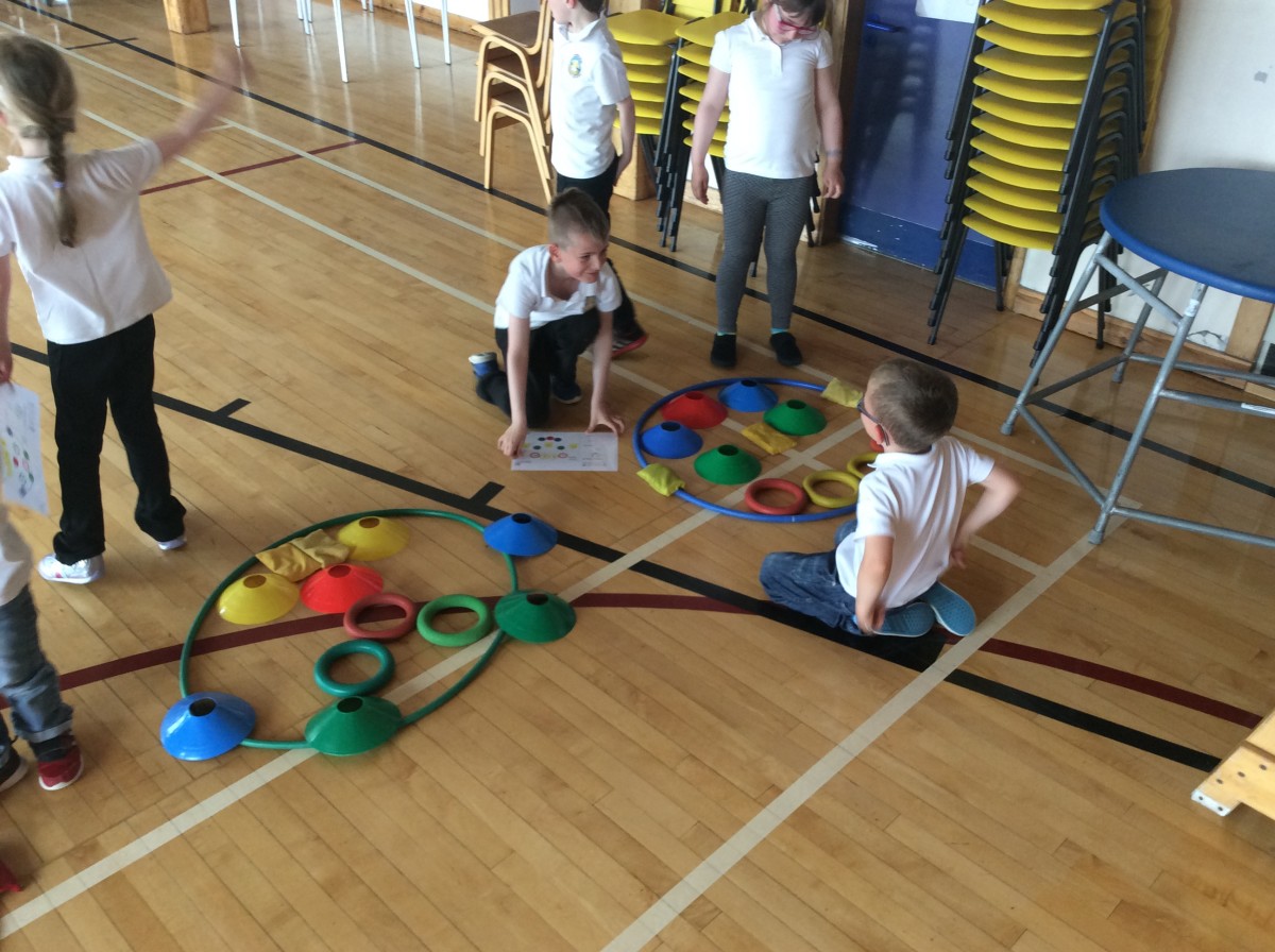 In our teams we had to read a map of a face and create the face using objects which were in the key. We did it as a relay race.