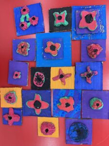 P3 have made clay models of poppies and painted them beautifully. I like the colours they chose for the card mounts.