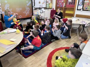 Some of us dressed up as characters from our favourite books, we shared lots of stories and we had a special World Book Day Book Bug with Mrs Grant.