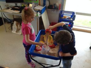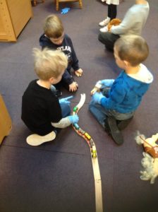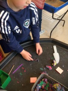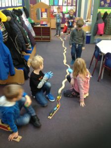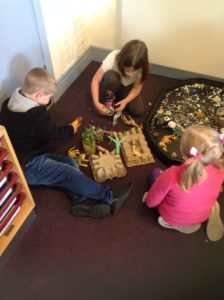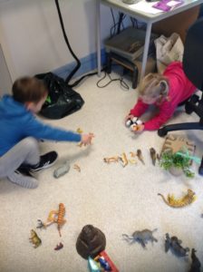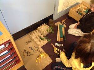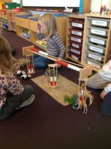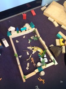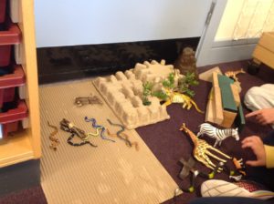 We began by adding some “mountains” to the animals’ enclosures using materials around the classroom.