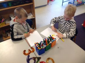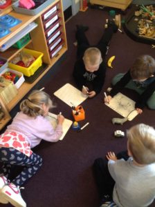 We made lots of artwork inspired by our zoo topic. We made a display above our zoo corner. We also read stories about the zoo and learned lots of zoo animals. We also did writing about our favourite zoo animals, bringing literacy into our play.
