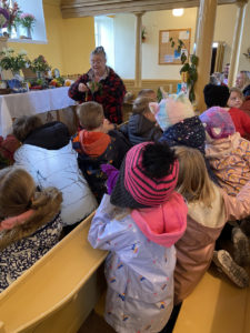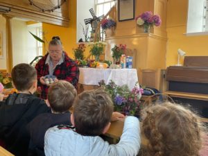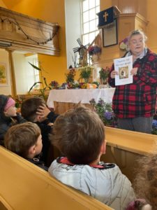 P1/2 visited the Kirk on Monday for the Harvest service. The pupils were quick to notice lots of food displayed in the kirk! Helen Cruddis discussed harvest time with the pupils and read them the story of The Harvest Mouse.