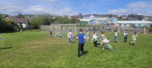 Primary 3’s Leadership focus this term is playground. We have decided to learn some games to help encourage p1-3 to play games in the playground. We have Jennifer from Active Schools in to teach us some games. We are then going to teach it to the primary 1 and 2 pupils. We have learned Dragon Treasure and Aeroplane Catchie today.