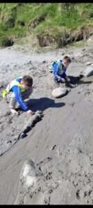 Off to the beach we went to skim some stones. We each took a stone back to class to be our magic stone for a lesson next week. We will be listening to ‘Da Magic Stane’ and using this as an idea for our writing focus.