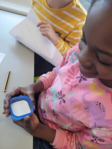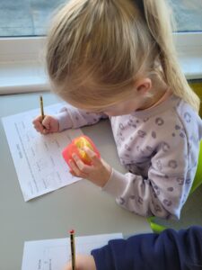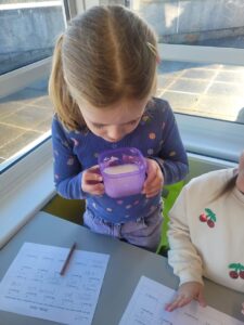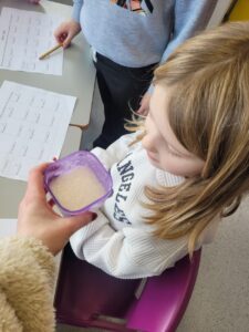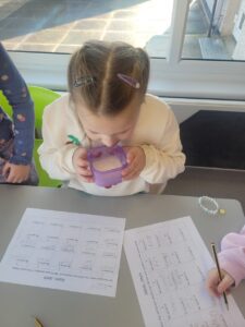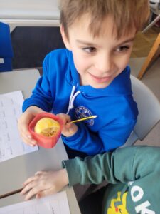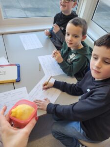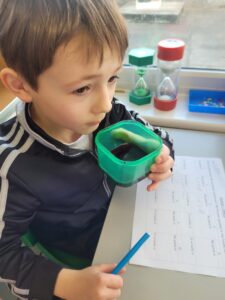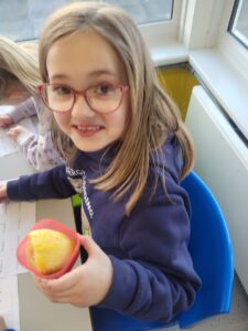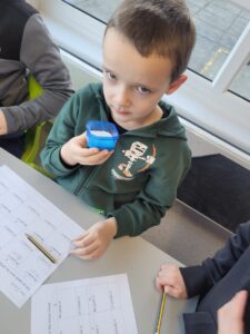 We have been learning about the senses that our body has. We looked at smell and had great fun experimenting with using our nose without using our eyes. We had 10 different smells to try and guess including washing powder, mint, lemon, shower gel, vinegar, vanilla, coconut, coffee, soy sauce and blackcurrant juice. The easiest ones to guess were coffee and lemon. Vinegar was the one that divided people, some hated it and some loved it.