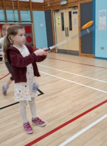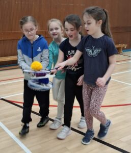 We had a visit from Karl the SMUHA Jarl and his squad. The bairns enjoyed singing the UHA song for the last time this year. Ruby and Joey put on a quiz. The first round was general knowledge and our pupils had to help the squad with this one as they did not know many of the answers at all! The second round was all about Sandwick and the Jarl did much better answering these questions. The third round was all about SMUHA and the squad certainly knew their facts about SMUHA. We also got to have a closer look at their outfits and weapons. It was an exciting start to the day!