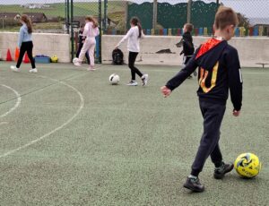 In Primary 2/3, our objective was to develop dribbling and passing skills. The pupils worked hard throughout the block, gaining confidence and making great progress with their skills.