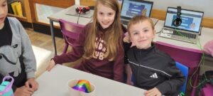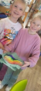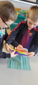 Then we learned that rainbows happen when sunlight bends through raindrops, splitting into colours like magic!
