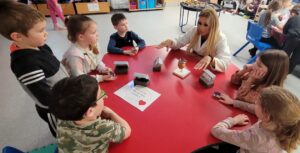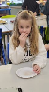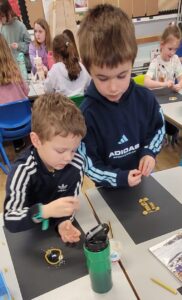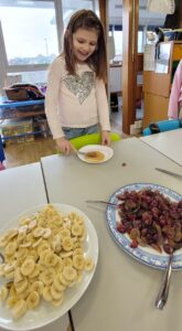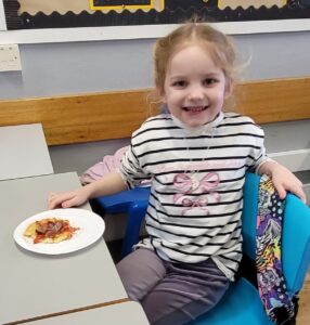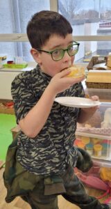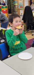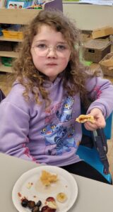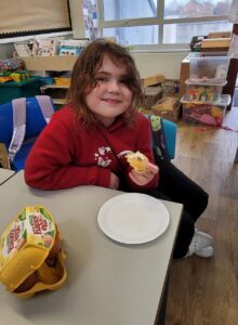 We used percussion instruments as part of our song and we each had a turn of playing all four – boomwhackers, tambourines, triangles and claves.