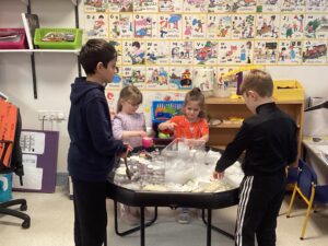 Today we had our first play session with all pupils in Primary joining together across the different classrooms and corridor spaces to experience a range of play activities. As expected, the first 30 minutes involved the pupils flitting around as they explored what was all on offer. After that, the pupils fairly settled and we witnessed some lovely interactions taking place between the pupils. A range of skills were on show in this first play session including: creativity; problem-solving; perseverance; team work; communication; fine and gross motor and imagination to name a few! Some pieces of creative work have been put aside to continue next week.
