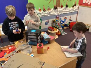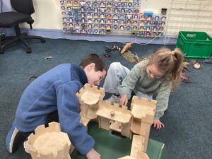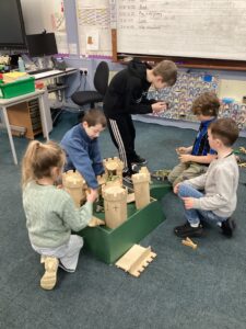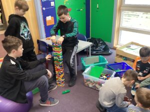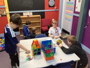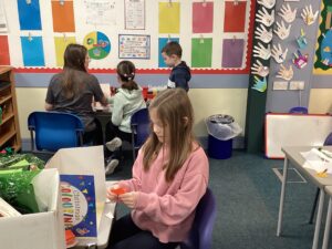 Today we had our first play session with all pupils in Primary joining together across the different classrooms and corridor spaces to experience a range of play activities. As expected, the first 30 minutes involved the pupils flitting around as they explored what was all on offer. After that, the pupils fairly settled and we witnessed some lovely interactions taking place between the pupils. A range of skills were on show in this first play session including: creativity; problem-solving; perseverance; team work; communication; fine and gross motor and imagination to name a few! Some pieces of creative work have been put aside to continue next week.