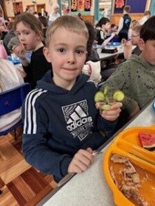 We wanted to taste fruit  and practised cutting it up ourselves.