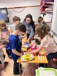 We learnt all about our 5 senses and finished the topic by putting our senses to the test.  Miss Watson (Foundation apprentice with UHI) also got involved by creating a fantastic feely box.  We loved all the stations but the feely box and the fidgets were the best.  The smell station was a very “smelly!”