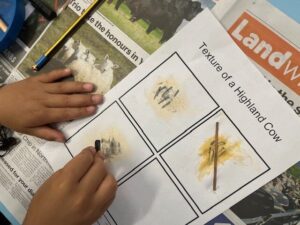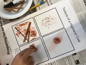 In Art we have been exploring TEXTURE. We started by experimenting and exploring different materials including, wool and watercolours to try to create the texture of a highland cow. Everyone really had fun exploring and learning about what materials do and do not work well together.