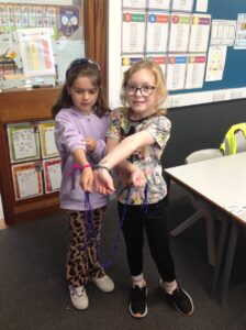 As part of our learning on ‘What Makes a Good Friend’, we worked together using our cooperative meta skills, to create our own friendship bracelets.