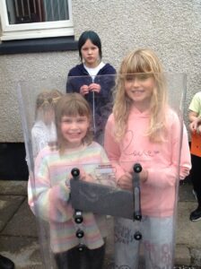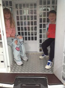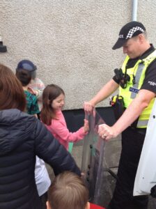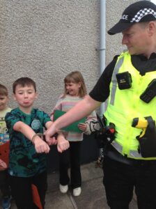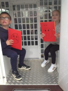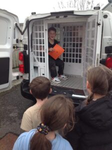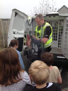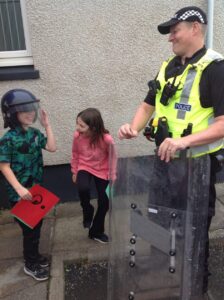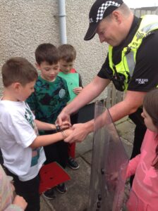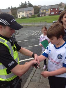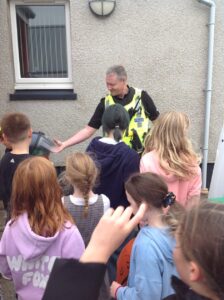As part of our class leadership this term, we helped Police Scotland to monitor traffic coming down Sound Brae. We made our red, amber and green emojis in class. House Captains also helped out. We had the opportunity to look at some police equipment too. We used our communication and leadership meta skills.