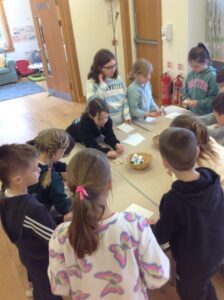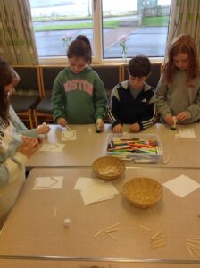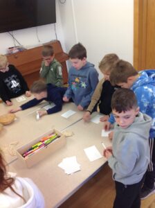 As part of our Religious and Moral Education Curriculum, we are learning about different places of worship and we visited the Baptist Church this morning. Iain and Lee talked with us about the differences between churches, what activities take place at the Baptist Church and the people that worship and visit. We took part in a Biscuit Quiz, which was fun. We also discussed the importance of Harvest and what it means to people. We heard the parable of The Rich Farmer and danced along to a food song. Iain and Lee showed us around the Church and we saw the Baptism Pool. We made our own little houses in craft time and spoke about who and what is important to us. Thank you to everyone who helped today. We used our focus, communication and creative meta skills.