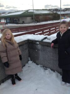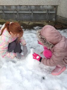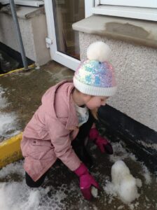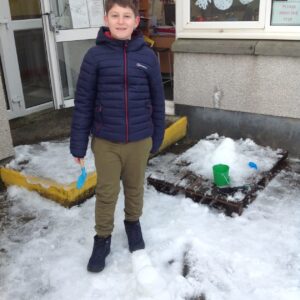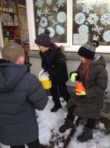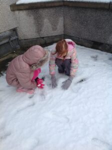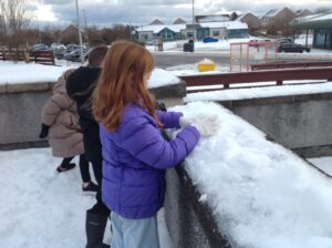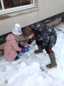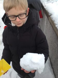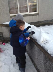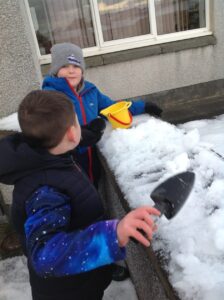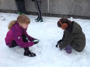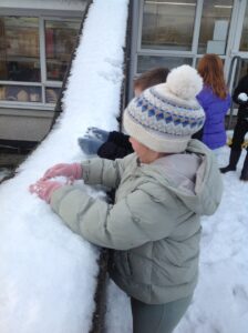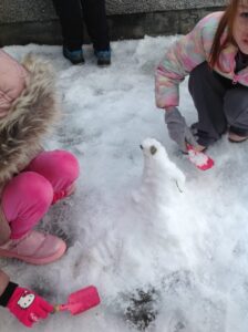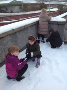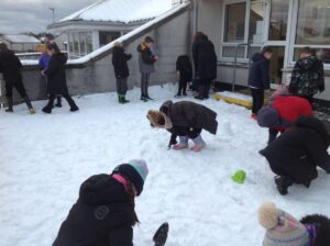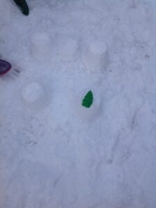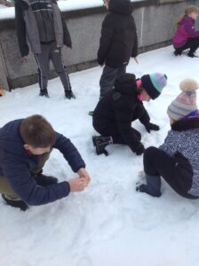 We worked in pairs to build different things from snow. We made snow castles, forts, shells, whales, blocks and many other things! We used our co-operative and creative meta skills. We had a lot of fun!