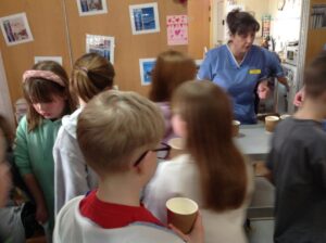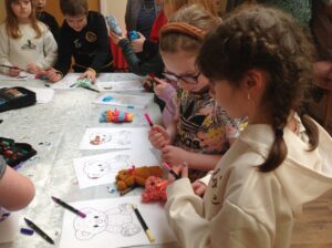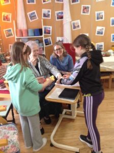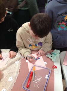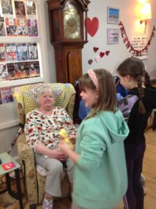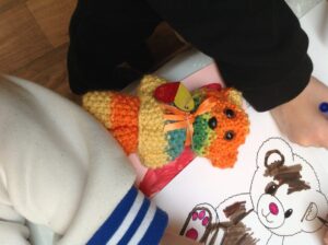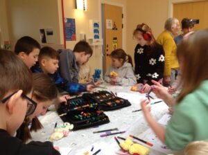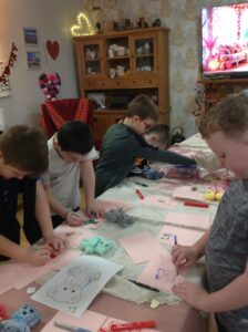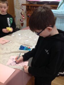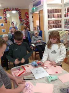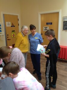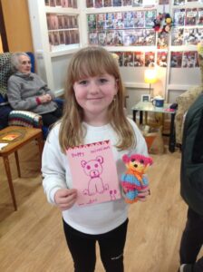 We had a really nice time today; visiting the Day Care setting and spending time with the service users. The service users were very kind and made us teddies, which we could take home. Our thanks goes out to them all! We also decorated wooden hearts and enjoyed colouring time. It was lovely to be able to have a chat with the people visiting Day Care today. They kindly shared snack with us too! Some of the service users commented on how respectful and kind our class are. Thank you to all who helped today and Shereen, Rosie, Stacey, Laina and all staff at Day Care. We shall continue to build on these links to the community.