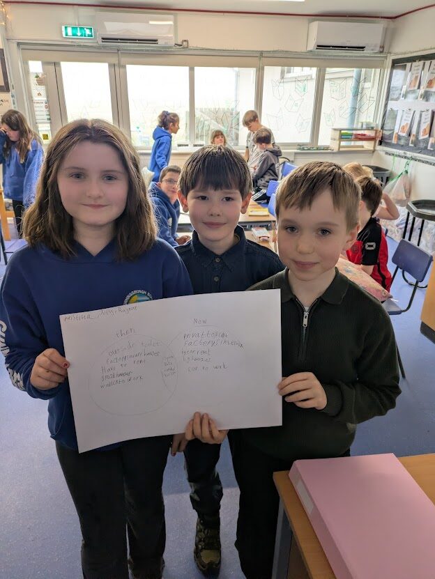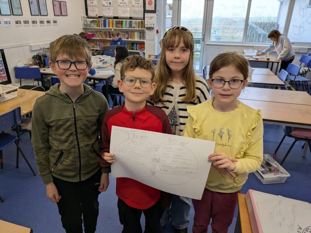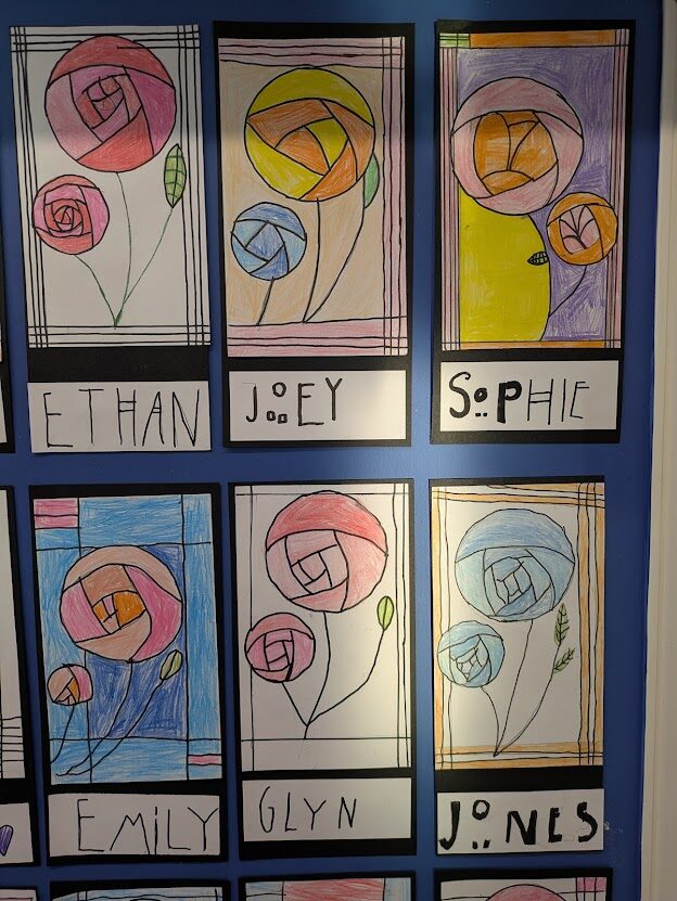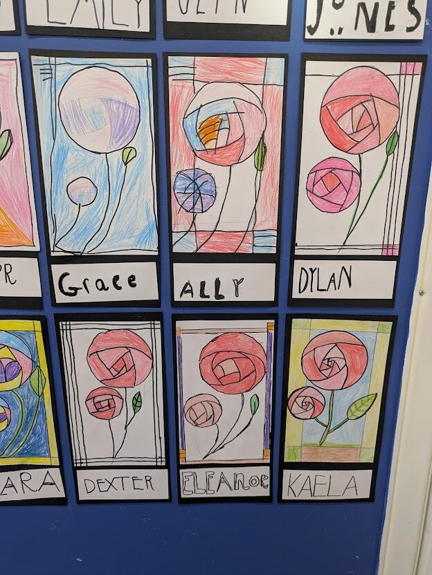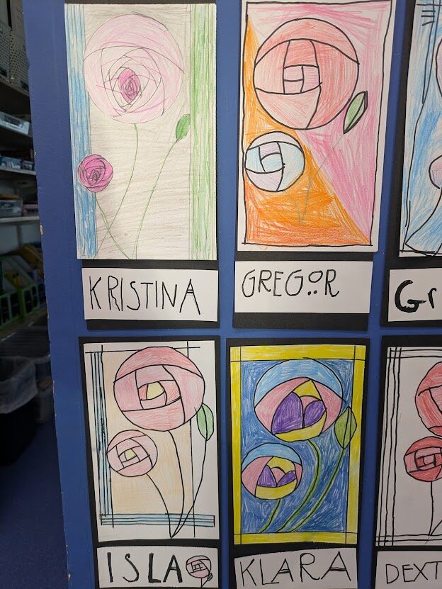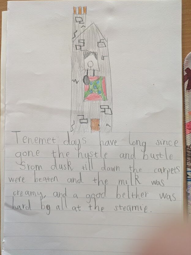 This week we were learning about Glasgow Tenements. We watched a tour of the Tenement House Museum in Glasgow and learned all about the life of the lady who lived there. We read a poem all about Mrs Johnson’s Great Gran who lived in one for the Tenements from 1912 when she was born until she died in 2007. From the poem we were able to learn about all the changes that happened in the time of the Tenements such as the invention of the washing machine, the telephone & the television, the addition on indoor toilets, the change in music (we listened to some Elvis and Beatles), the Queen’s coronation (we watched a bit of this) and the moon landing (we watched a bit of this). The kids then created venn diagrams about life in the Tenements versus life now then illustrated parts of the poem with what they had learned. We also drew Mackintosh Roses.