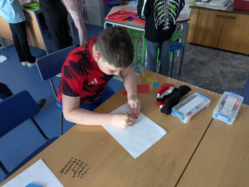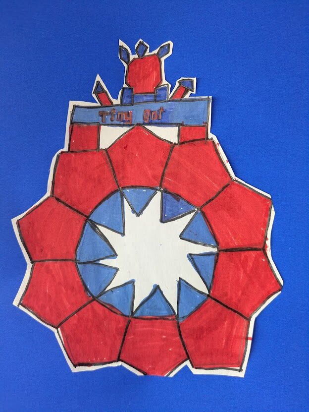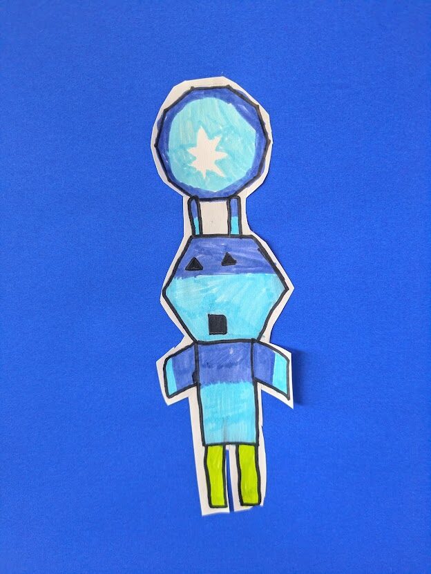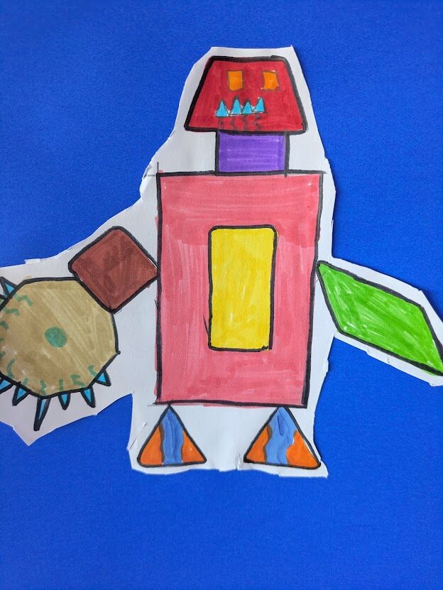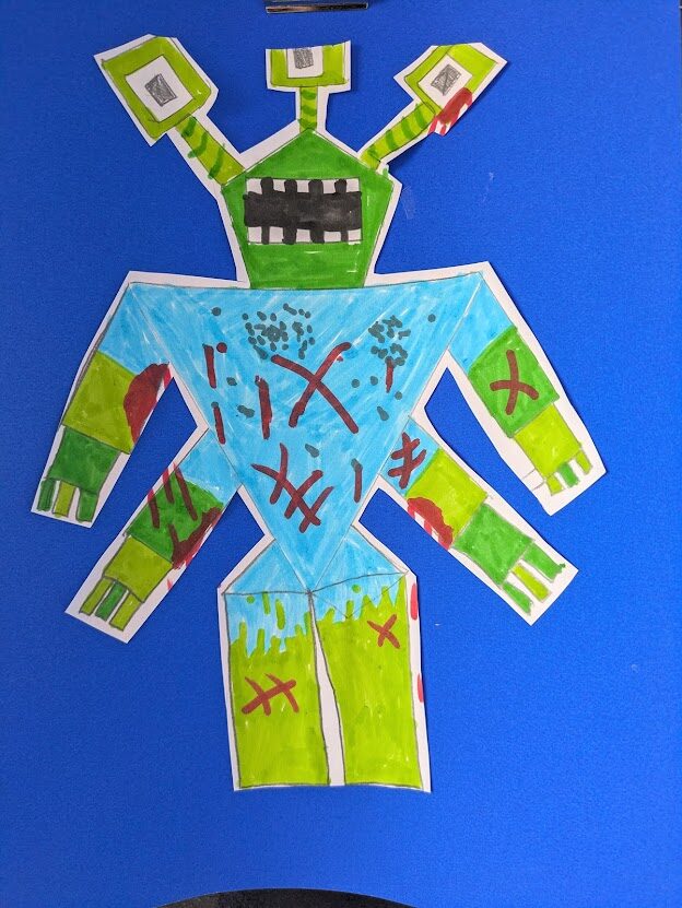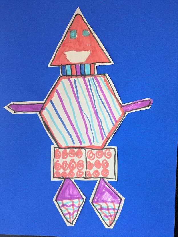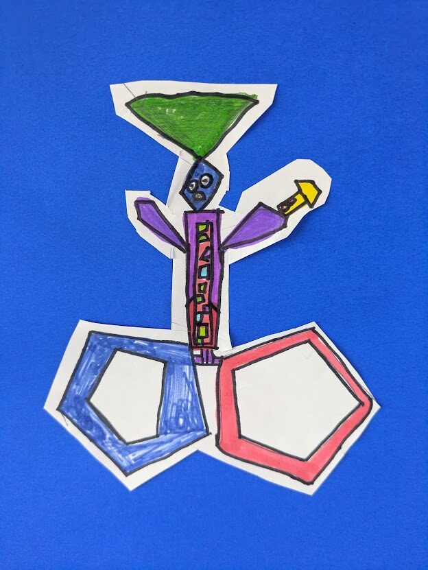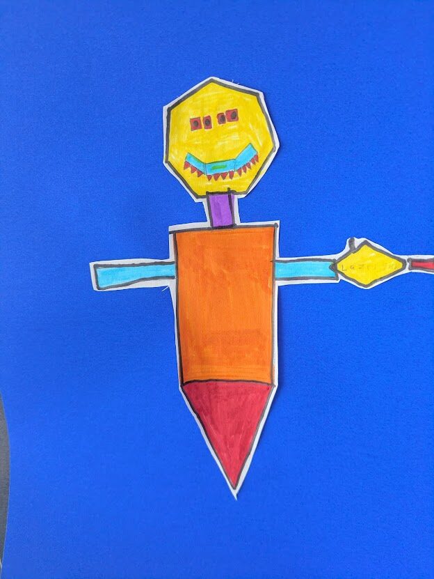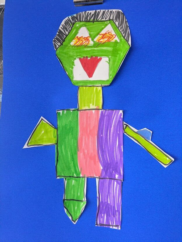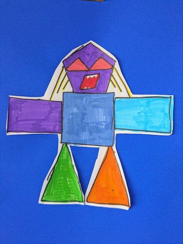 In maths this week we were learning about 2D shapes and their properties. We drew shape aliens and then wrote clue cards to describe them using the properties of the different shapes we included. I wonder how many of the 13 shapes that we learned that the kids can remember? (6 x 4 sided shapes then 3,5,6,7,8,9,10 sided shapes)