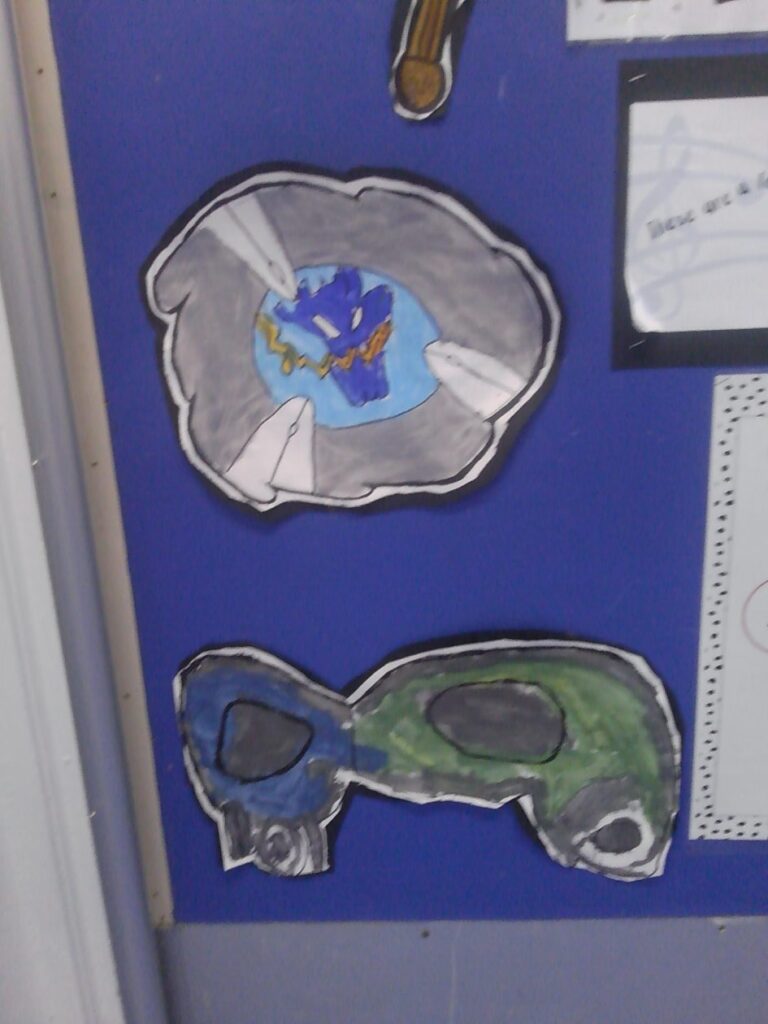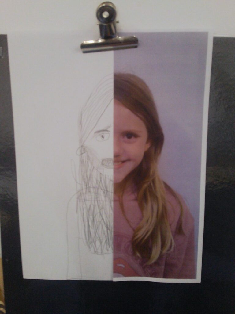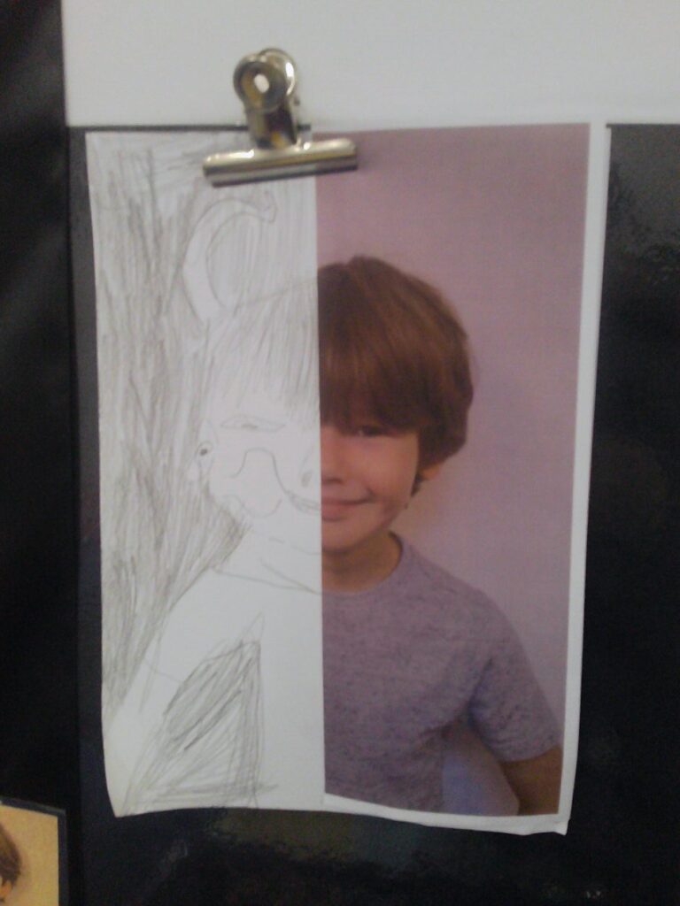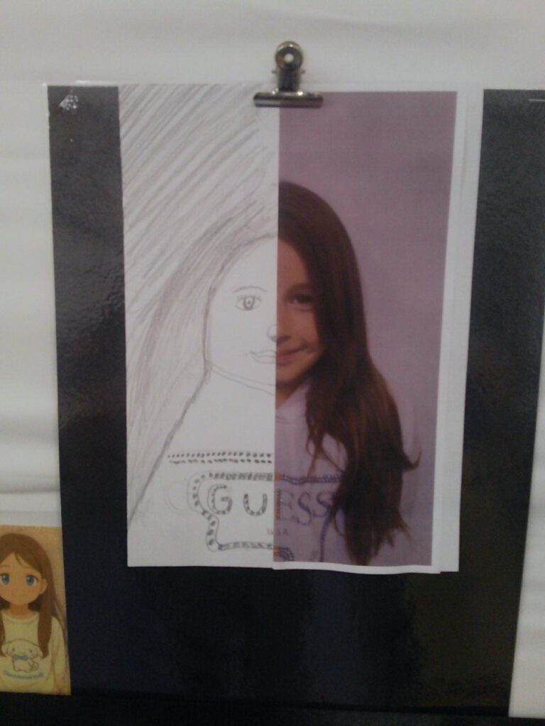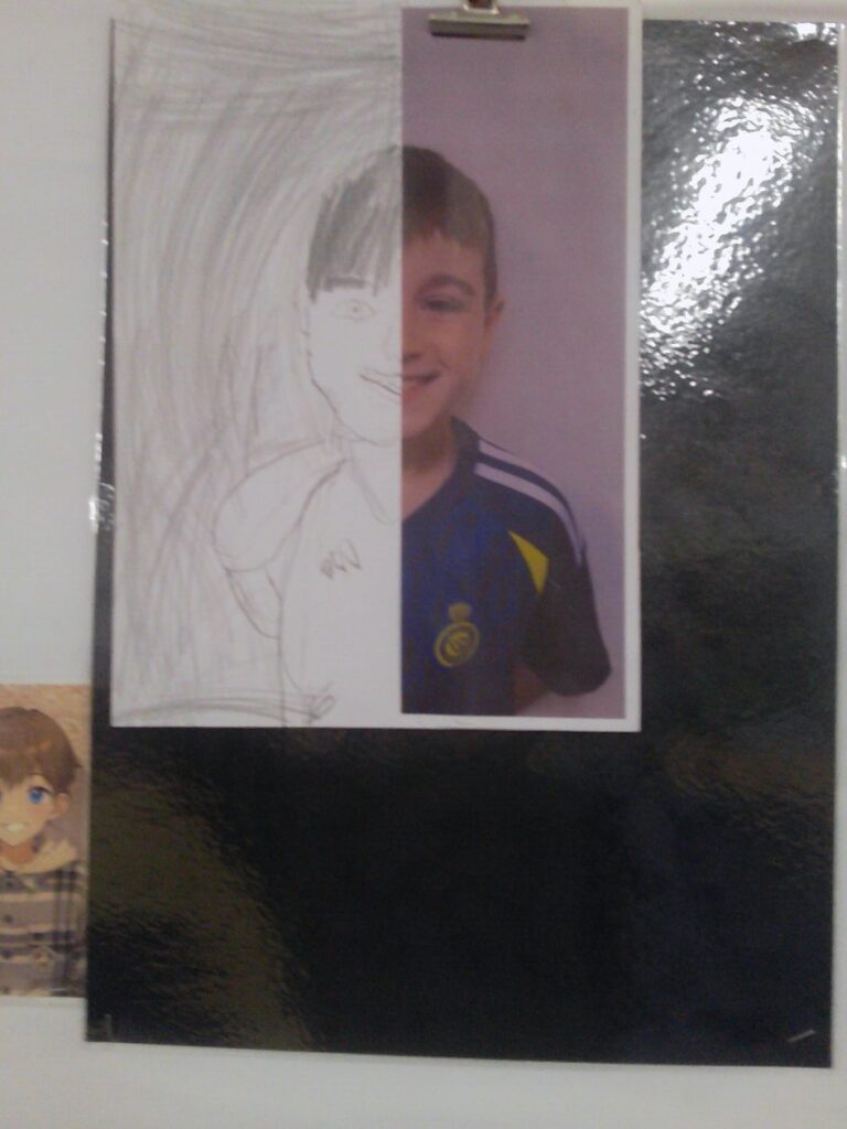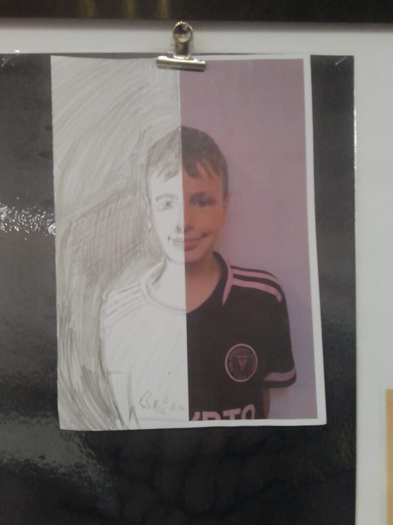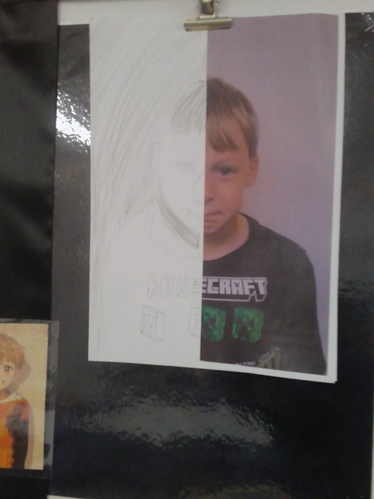 The children we given a photograph of half of their face. They then drew and shaded the other half in pencil.