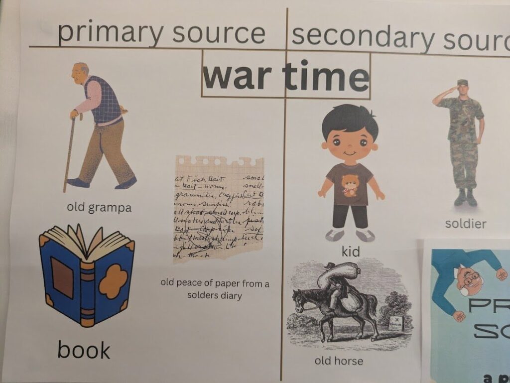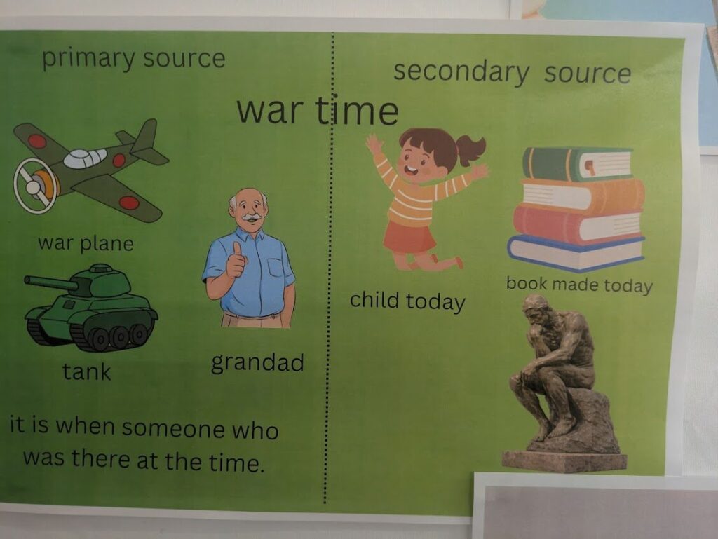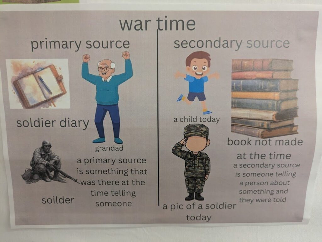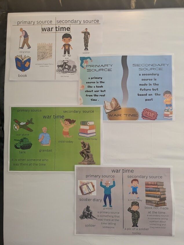 This week we have been learning about primary and secondary sources. We looked at different sources of information and discussed the properties that made them primary or secondary. The children then created posters showing possible examples of primary and secondary sources.