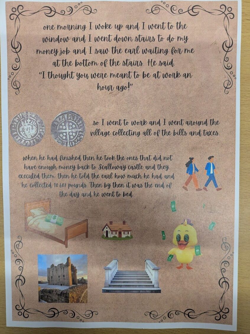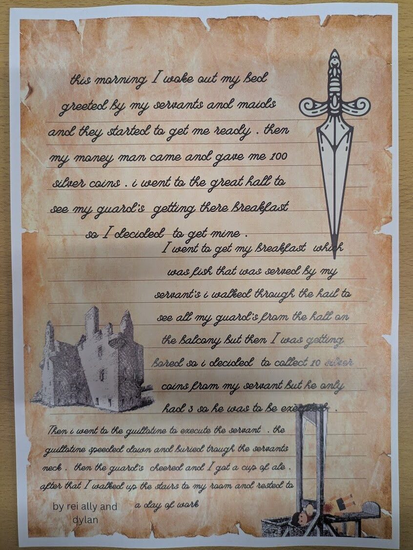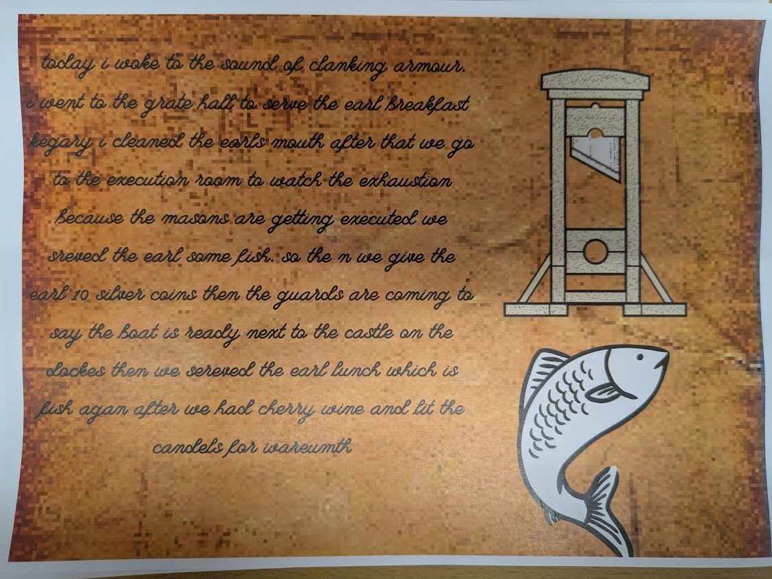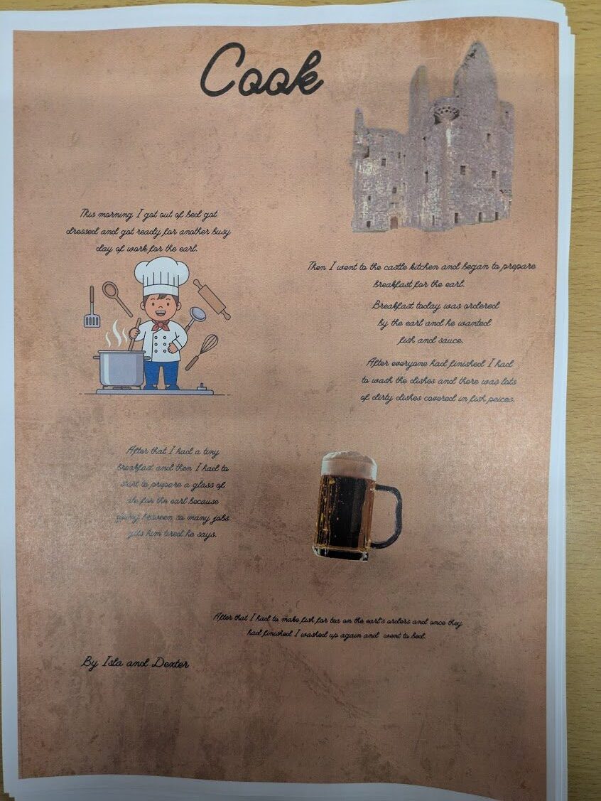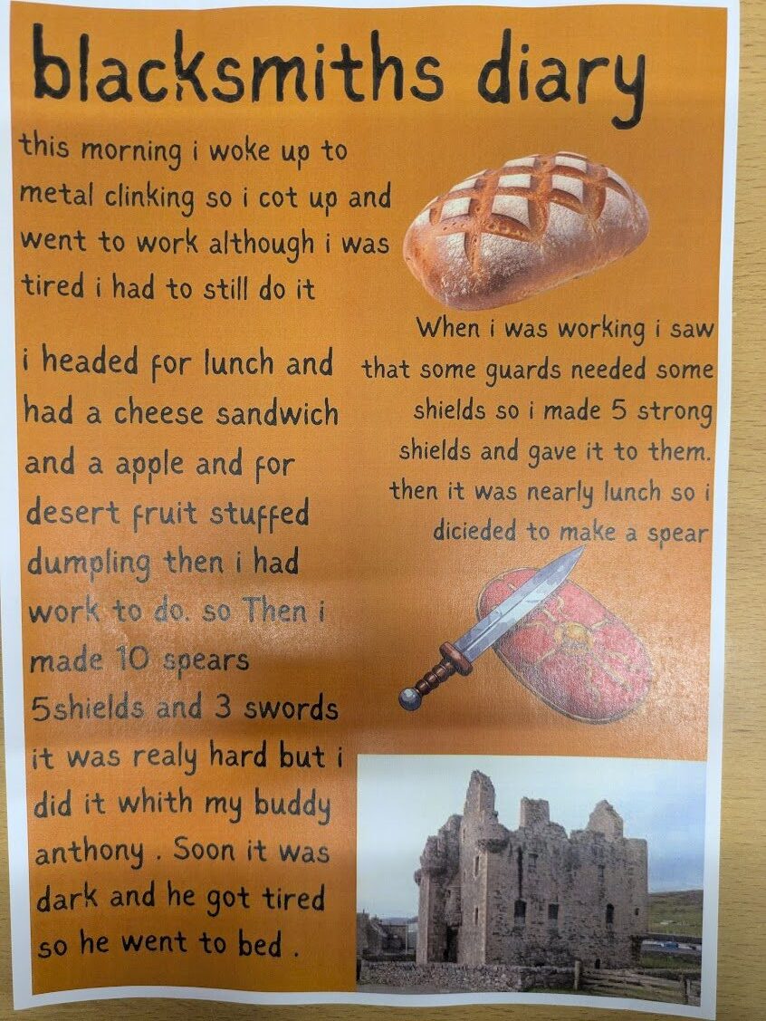 This week we have focused on Scalloway Castle. The kids learned about ‘Black Patie’ also known as Patrick Stewart, the 2nd Earl of Orkney and Shetland. The kids learned about the different people who would have worked in the castle in the early 1600s. The kids then read an extract from Patrick Stewart’s ‘diary’ . Finally the kids worked in pairs to write a diary entry as one of the people who would work for the Earl.