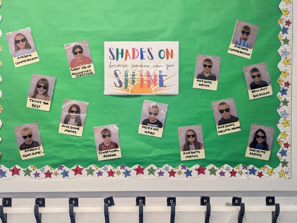 Since Wednesday this week I have been watching for glimmers – moments when the kids have gone above and beyond with their behaviours, effort or tasks. We are extremely lucky because I could give every child a glimmer every day so I aim to give out 3/4 at day. There are several kids on the wall already and more will follow in the coming days.