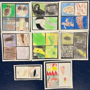 We used and combined different drawing materials to try and create realistic looking images of our animal.
