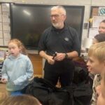 Michael Coutts visited our class to tell us about Dogs Against Drugs. We had fun trying on some of the outfits that Michael wears to do his job. He also took handcuffs and a baton in to show us. We found out that a dog’s sense of smell is 30x better than a humans. Labradors are ideal dogs to train for the job. Dogs Against Drugs keep us safe by trying to stop drugs coming into Shetland. They visit the post office, the airport, Northlink and freight centres.