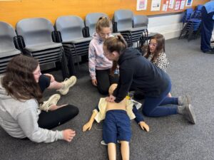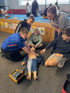 During their visit we got to practise giving CPR to dummies and got to use practise defibrillators, learning some key lifesaving skills.