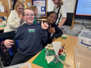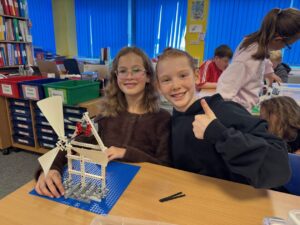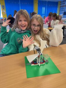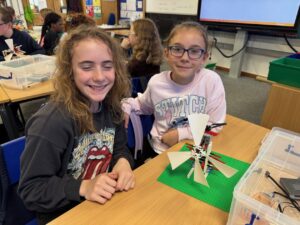 The afternoon was spent looking at renewable energy and in particular wind turbines.  Pupils were given the challenge to build a wind turbine using Lego and a generator.  There were a lot of testing their models and amending accordingly.  In the end, nearly all of the turbine were able to produce electricity when put next to a fan.  The highest reading reached was 6.2 volts!