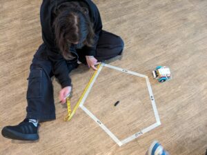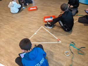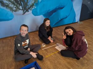 This week we have been celebrating numeracy week.  We used our outdoor space to practice our measuring and estimation skills.  We measured how high some of our wildlife area trees are.  We had to make an estimate of the height in metres and use a bucket of water to find the reflection.  We then used a formula to calculate the height.  It was fun but tricky to find the reflection but gave us lots of practice estimating in metres.