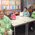 Today is Children in Need Day so we came to school in our pajamas. we took a penny for Pudsy.