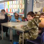 We paid 20p for a pop tune for Pudsy.  Mrs. Polson played the songs that we wrote down.  She played “Karma Chameleon” by Boy George, “Welcome to the Jungle” by Guns n Roses and a lot of other songs. Everyone was dancing.  The favourite song we heard was “Never Gonna Give You Up” by Rick Astley.
