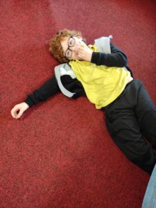 The Romans ate while lying down! We tried to see what it was like. We were surprised to learn that they didn’t use cutlery or sit at a table like we do.